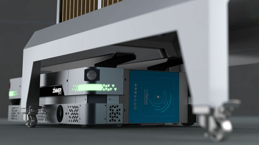 Durch die jahrzehntelange Erfahrung in der Automatisierung ist die Zimmer Group mit den unterschiedlichen Produktionsumgebungen vertraut. Bei der Integration von fahrerlosen Transportlösungen wird daher besonderer Wert darauf gelegt, dass die bestehende Infrastruktur nicht verändert werden muss. Das System fügt sich nahtlos in die vorhandenen Gegebenheiten ein. Der Fahrweg bleibt stets begeh- und befahrbar. Der omnidirektionale Antrieb mit seinen acht Rädern ermöglicht einen Wenderadius des AMR von 0° – ein wichtiger Aspekt in engen Arbeitsbereichen oder bei beengten Platzverhältnissen.